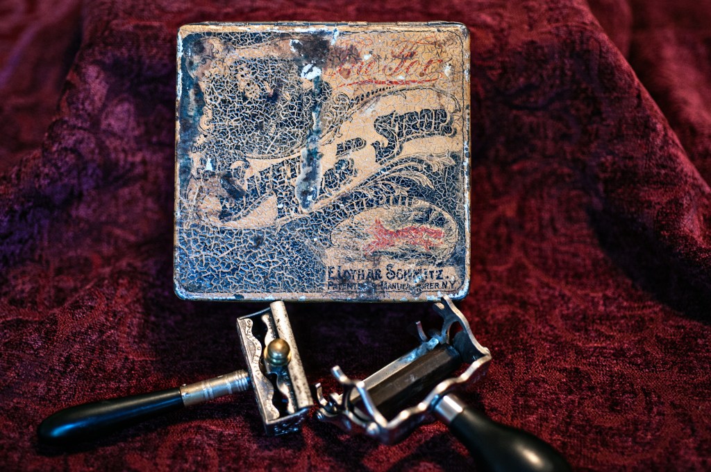 Before Gillette The First Patented Safety Razor in the First Tin. Kampfe Bros. 1880 My Ultra Rare Fox safety razor in a large lithographic tin More Rare Razors comming soon!!! Share this: Click to share on X (Opens in new window) X Click to share on Facebook (Opens in new window) Facebook Like Loading...